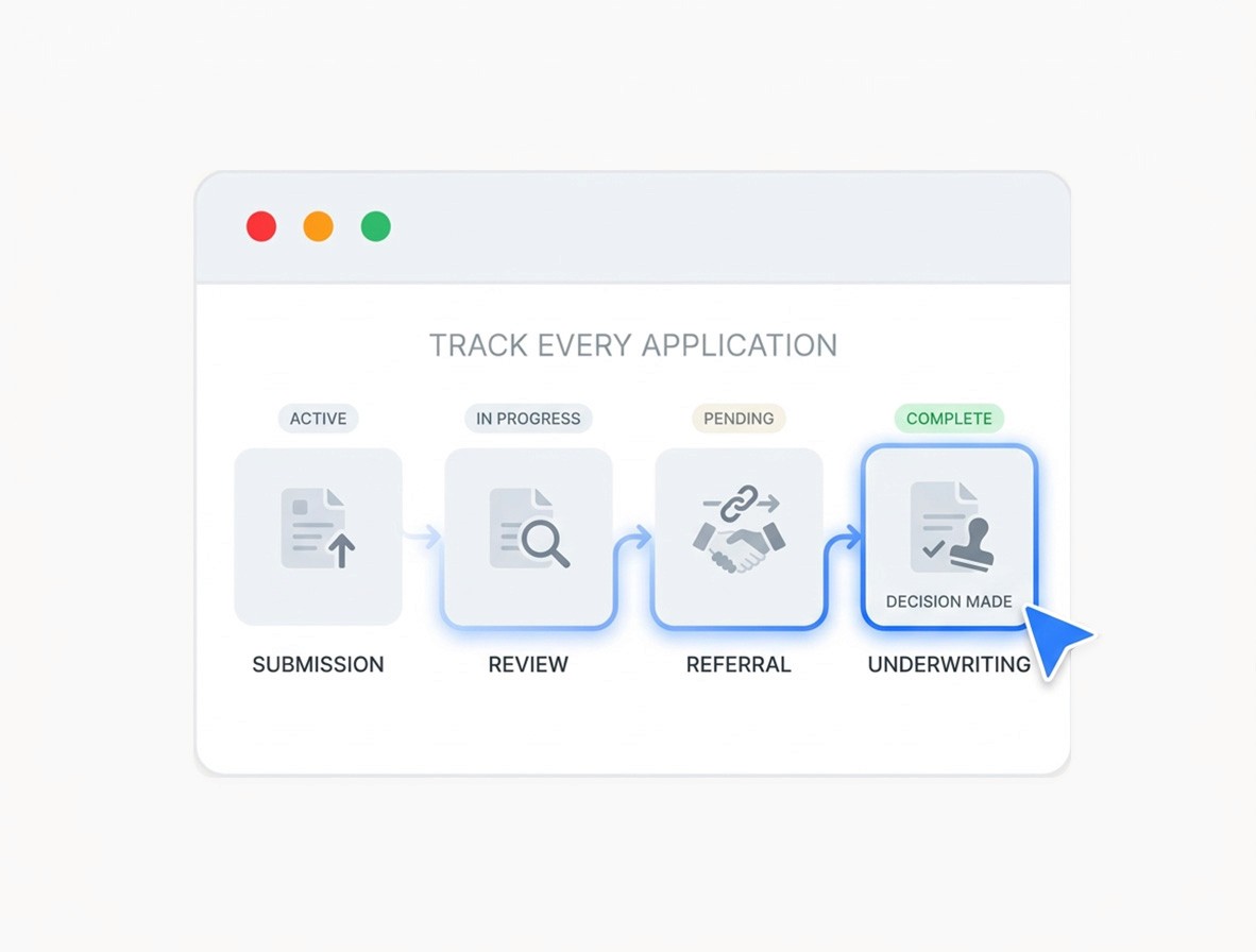 Track every application from submission through review, referral, and final underwriting decision.
