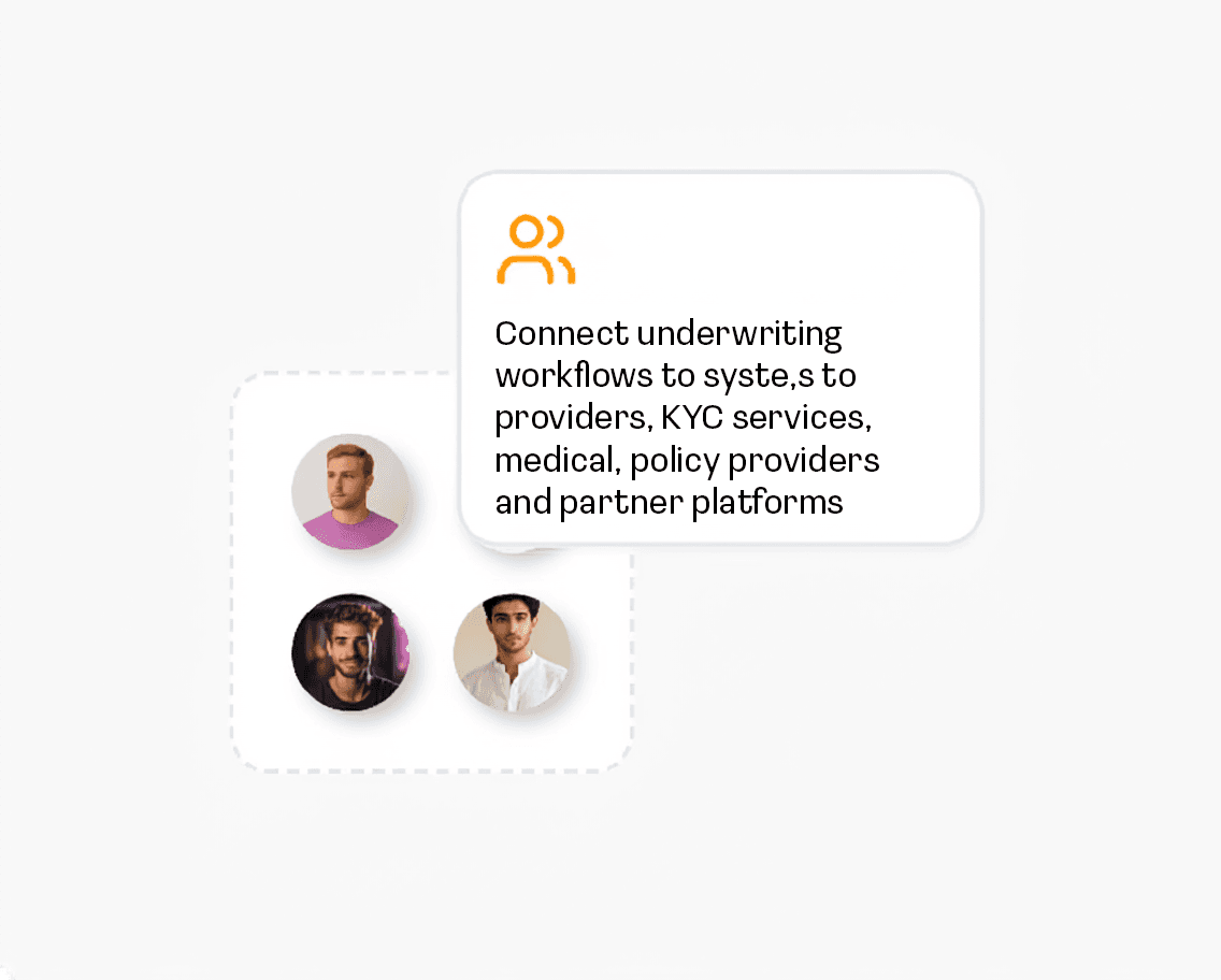 Connect underwriting workflows to medical providers, KYC services, policy systems, and partner platforms.
